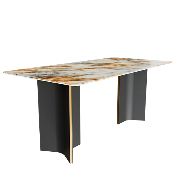 The T2030-1.8M Dining Table is a luxury rectangular dining table designed to elevate your dining experience. With its premium marble top and sleek modern steel legs, it offers a combination of timeless elegance and durable functionality.