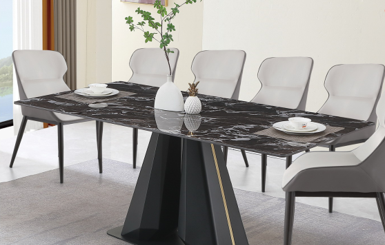 Elevate your dining experience with this elegant black marble dining table set. Brand new and in flawless condition, this stunning rectangular table comfortably seats up to 6 people, making it perfect for family gatherings or dinner parties. The chic design features a luxurious black marble top complemented by stylish chairs that enhance any modern decor. Never used, this set is ready to become the centrepiece of your dining area, combining functionality with sophistication.