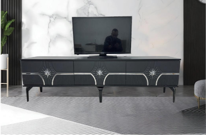 It features a sleek and elegant design that will enhance any living room. The flawless condition of this piece makes it an eye-catching centerpiece for your home. Its spacious storage options are perfect for keeping your electronics and media organized while maintaining a stylish appearance. If you’re looking to upgrade your entertainment space, this modern design fits beautifully with any decor.
