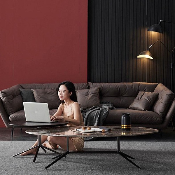 The CJ626A Coffee Table Set is a perfect fusion of luxury and functionality, crafted with a marble and veneer wood top supported by sleek metal legs. This 2-piece set includes both a round and an oval table, offering versatility in arrangement and design.