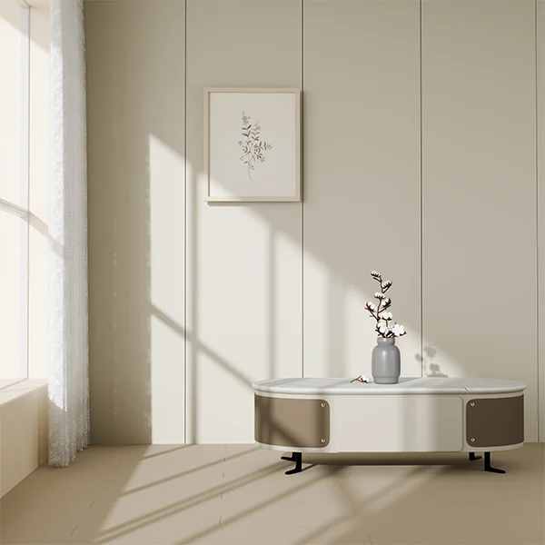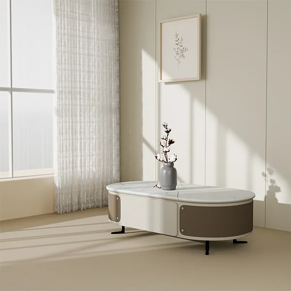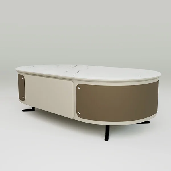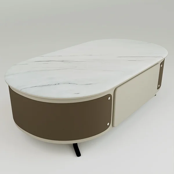 Ideal for modern homes, lounges, or office spaces, the DB-CJ2355 Coffee Table adds a refined touch with its smooth oval silhouette, marble finish, and functional storage design.