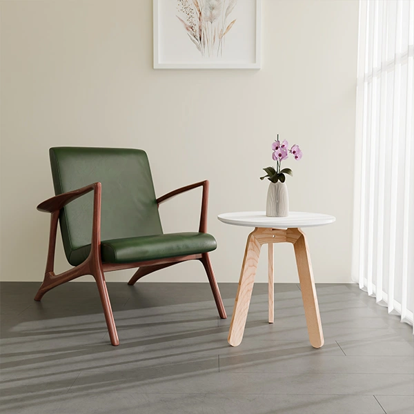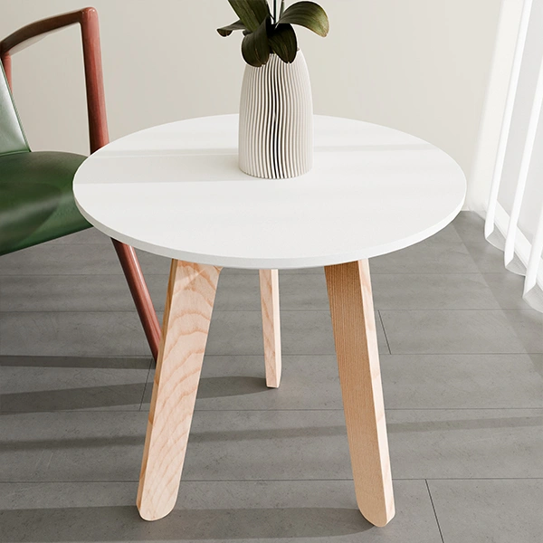 This round white coffee table is crafted for both style and durability, making it suitable for indoor and outdoor use. Featuring a powder-coated top paired with sturdy wooden legs, it delivers long-lasting performance while maintaining a sleek modern look.