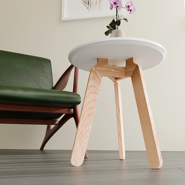Modern Minimalist Look – White top with natural wood adds elegance to any décor.