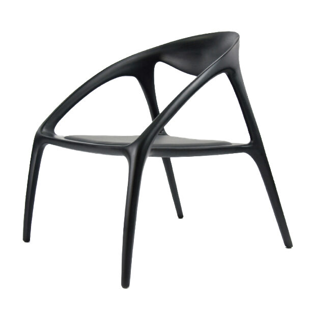 The chair’s legs, arms, and back are all connected by a single graceful curve. The back legs, which are leaning out, form an energetic angle. At the same time, the spacious seat provides supreme comfort. A fantastic rhythm exists between the positive and negative shapes, resembling a river confluence. Its name Flowing Chair refers to the way the waters flow into one another.